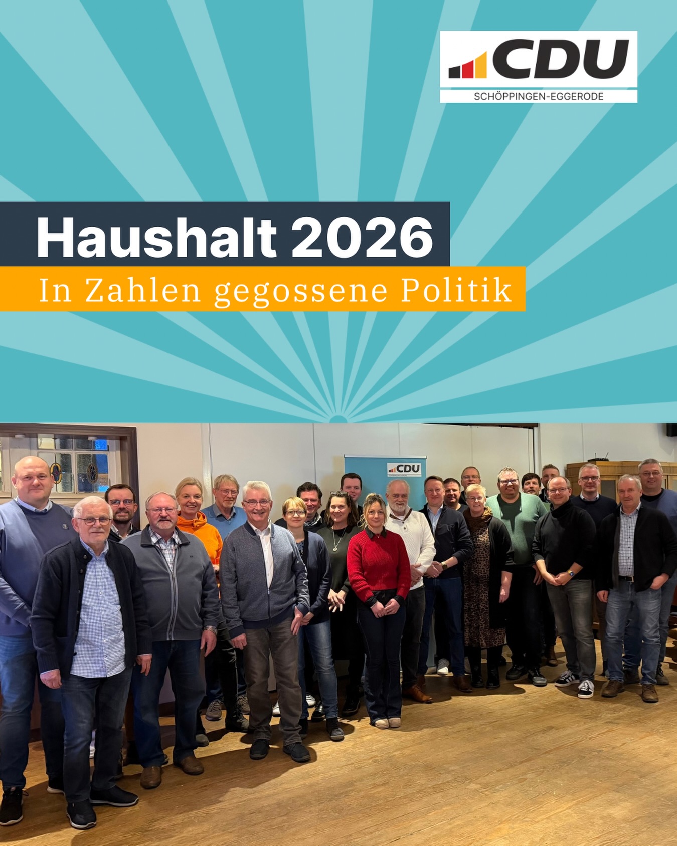 mehrHier sind die Januar-Termine der CDU Schöppingen-Eggerode - folgt uns, dann halten wir euch gerne auf dem Laufenden. 🗓️ Sa, 10.01. ? Fraktion 🗓️ Sa, 24.01. ? Klausurtagung mit Haushaltsplanberatung 🗓️ Mo, 26.01. ? Gemeinderat Gemeinsam gestalten wir die Zukunft unserer Gemeinde. Bleibt informiert, bringt eure Ideen ein und macht eure Stimme hörbar. Unsere Fraktionssitzungen bleiben weiterhin für alle offen ? kommt vorbei, diskutiert mit und gestaltet aktiv mit, was euch wichtig ist. Eingeladen sind alle interessierten Bürgerinnen und Bürger, die sich für Kommunalpolitik in der Gemeinde Schöppingen interessieren und keiner anderen Partei oder Fraktion angehören. Eine Anmeldung ist nicht erforderlich. #schöppingen #eggerode #zeitfürkommunalpolitik #fürunserwestmünsterland