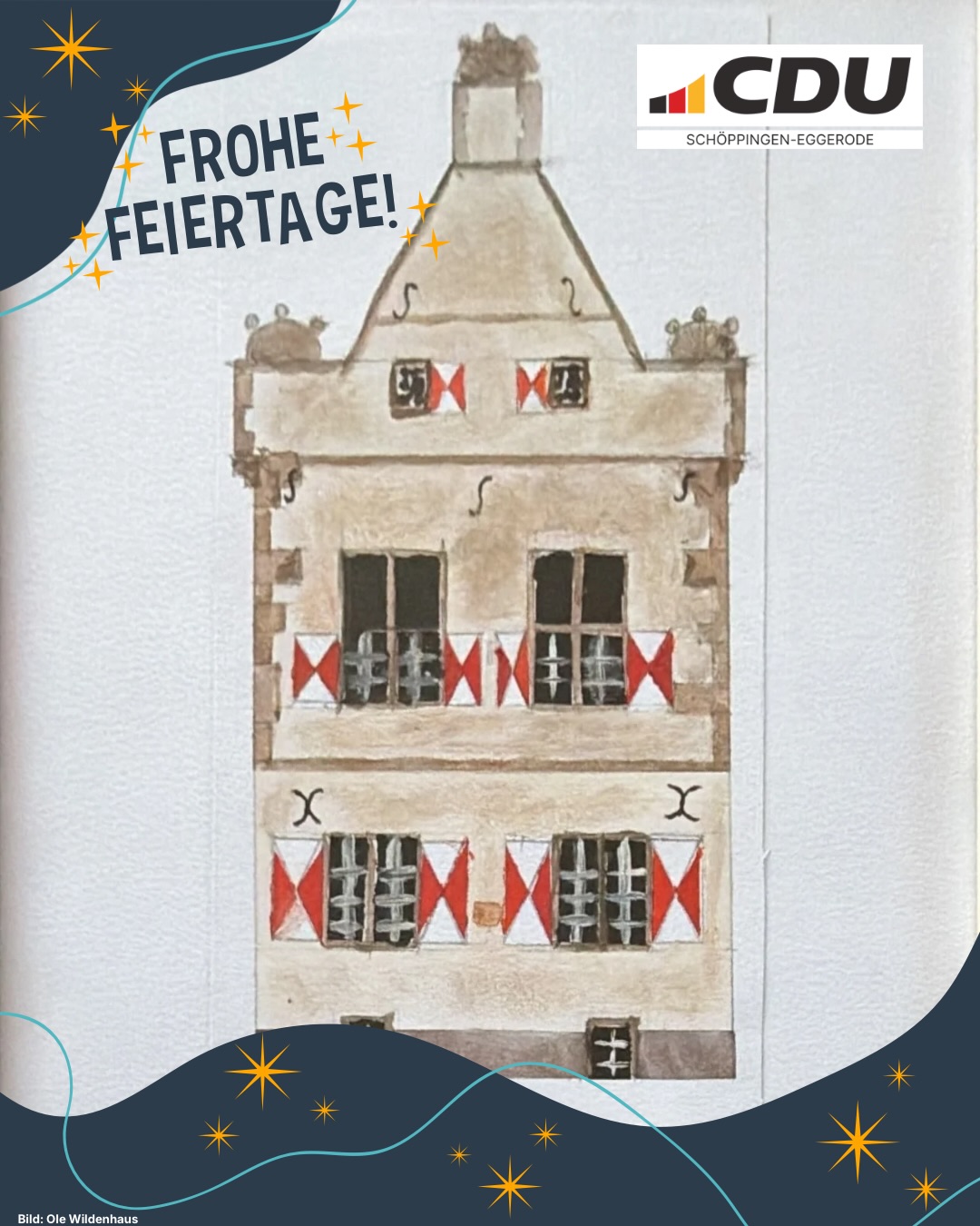 Liebe Schöppingerinnen und Schöppinger, das Weihnachtsfest lädt uns ein, innezuhalten und dankbar auf das vergangene Jahr zu blicken. In einer Zeit voller Herausforderungen und Veränderungen dürfen wir uns daran erinnern, was uns trägt: Vertrauen, Zusammenhalt und die Hoffnung auf eine gute Zukunft. Papst Johannes Paul II. sagte einmal:?"Die Zukunft beginnt heute, nicht morgen."?Dieses Wort ermutigt uns, Verantwortung zu übernehmen und gemeinsam die Weichen für ein starkes Miteinander zu stellen ? in unserer Gemeinde, in unserem Land und in Europa. Wir wünschen Ihnen und Ihren Familien ein gesegnetes Weihnachtsfest, besinnliche Stunden im Kreis der Liebsten und einen guten Start in ein gesundes, erfolgreiches neues Jahr. Frohe Weihnachten und ein glückliches neues Jahr!?Ihre und Eure CDU Schöppingen-Eggerode